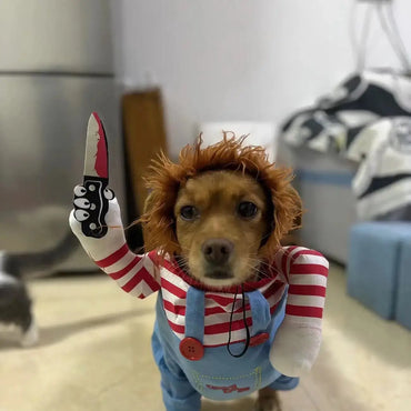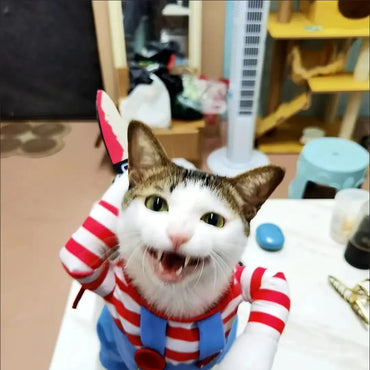 Transform your furry friend into the star of the party with this funny Halloween cosplay costume. Designed in bold red stripes, it’s perfect for creating a playful and spooky vibe. Made from soft polyester, it’s comfortable for pets to wear while still being durable enough for multiple uses.